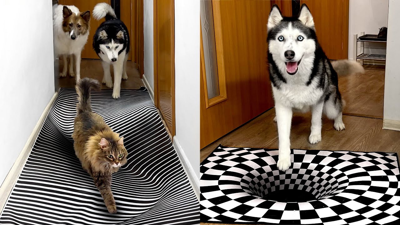 Will Husky Dogs and Cats Believe in an Optical Illusion? Compilation of the best moments